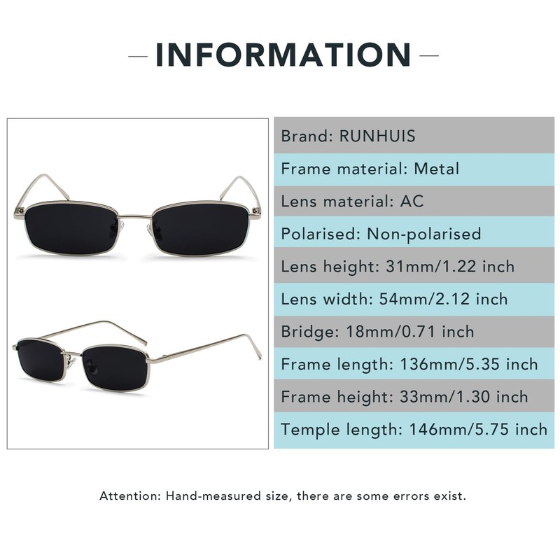 - CLASSIC SMALL SQUARE FRAME This 90s retro sunglasses with narrow rectangular frame fits different face shapes and keeps up with the latest fashion trend.