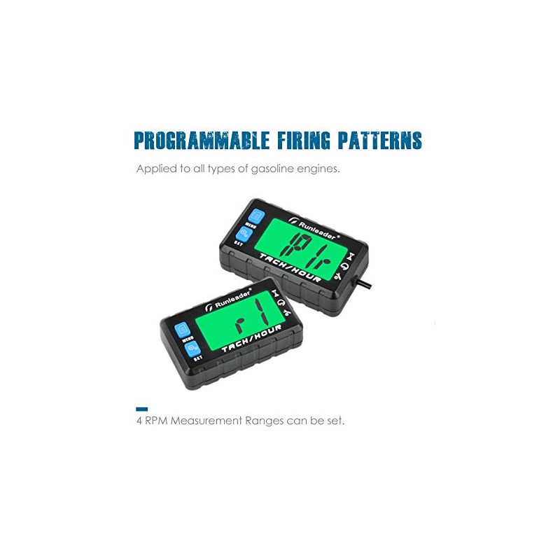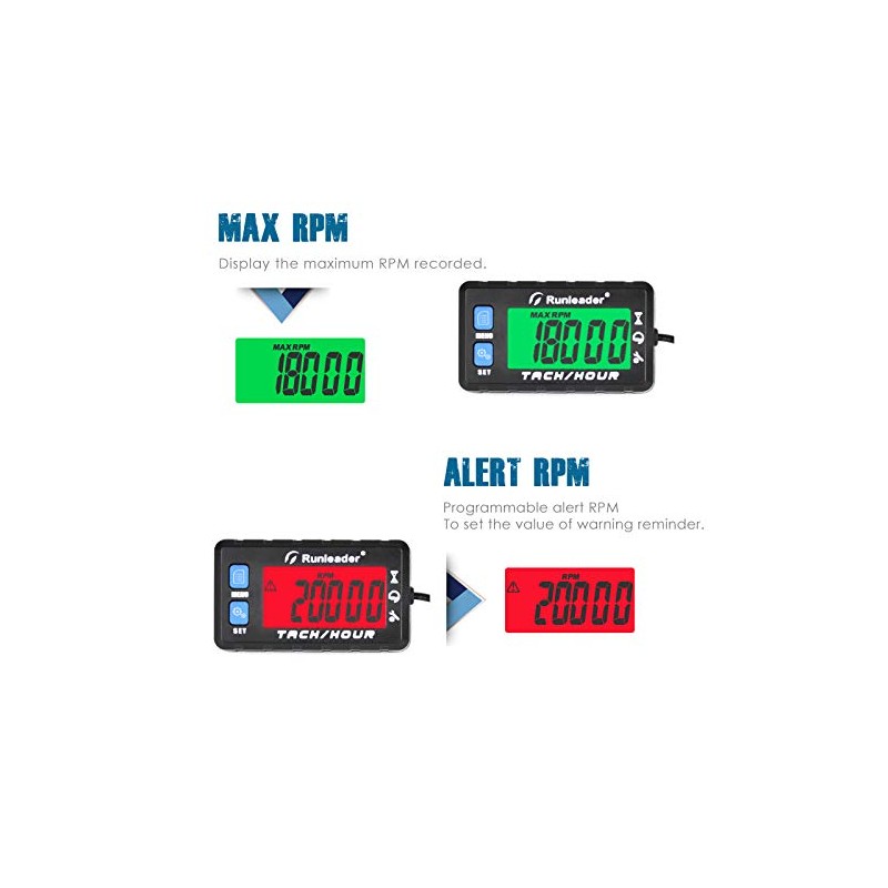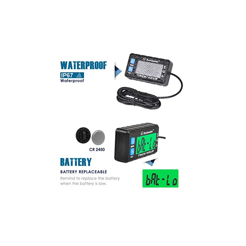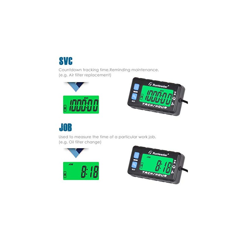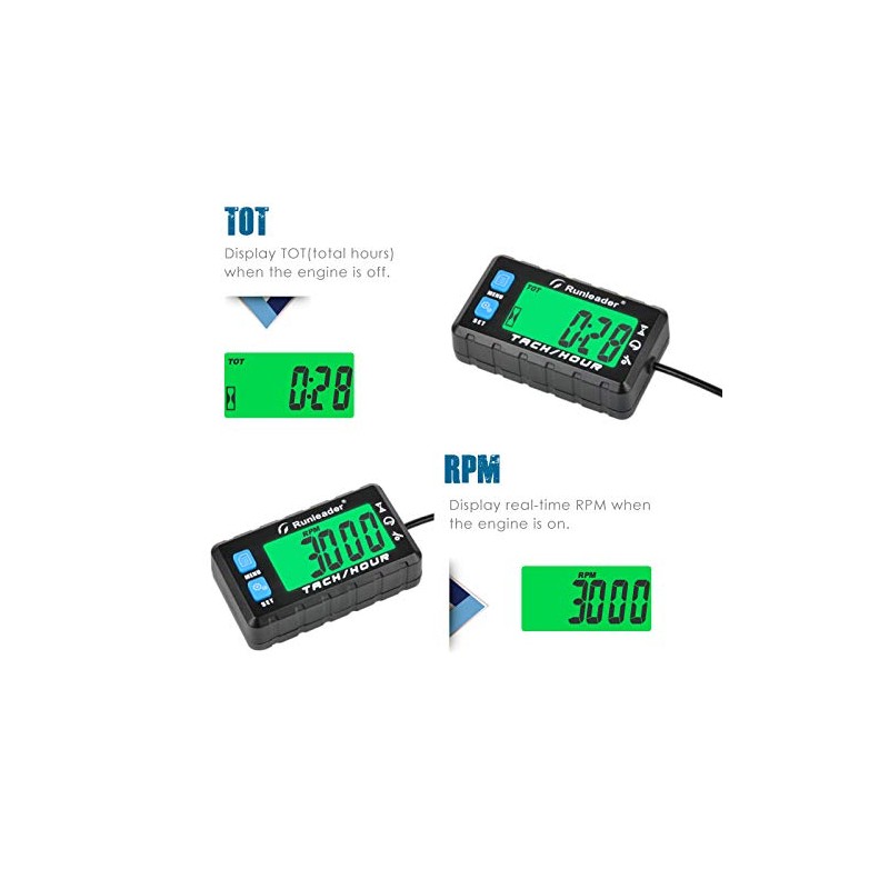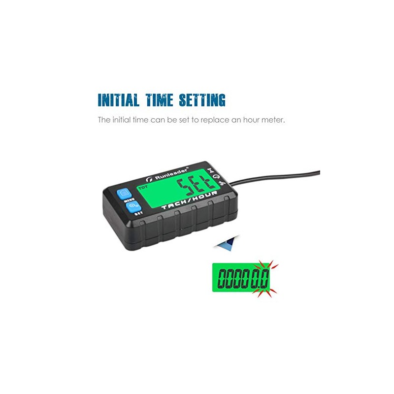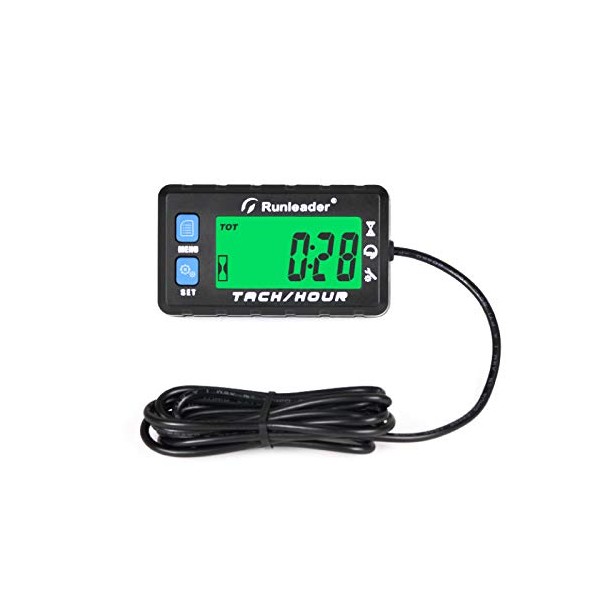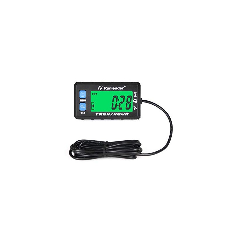 Runleader - Operating Hour Counter Tachometer, Maintenance Reminder, Multicoloured Backlit Display, Adjustable Starting Hours, Use for Lawn Mower Generator Marine ATV (HM058A-BU)