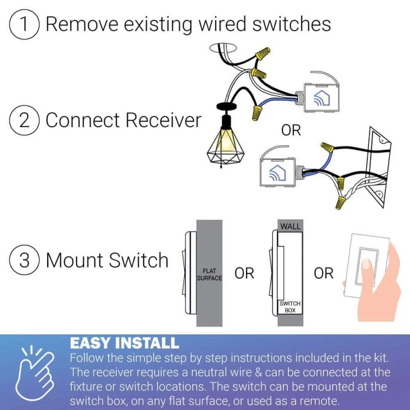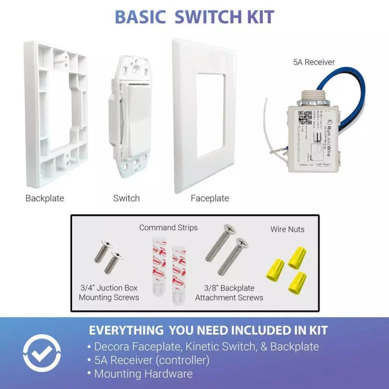 Looking to add or move a switch, RunLessWire has a stress-free, DIY solution to save you money, without having to pull up the drywall to run wires. This self-powered wireless switch sends a signal to the pre-programed receiver with the press of a button, and eliminates the need for wires, batteries, or internet access. Simply install the receiver to your fixture, then mount the switch anywhere and enjoy never having to change out the batteries, ever