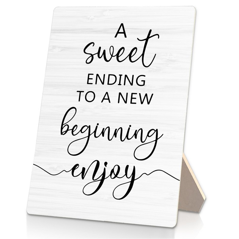 RUNMESS A Sweet Ending to a New Beginning Sign 5x7inch, Wedding Wooden Stand, Baby Shower Retirement Graduation Party Decorations, Decor, Gifts