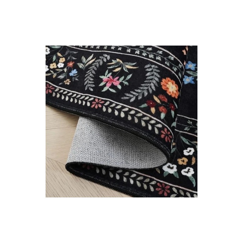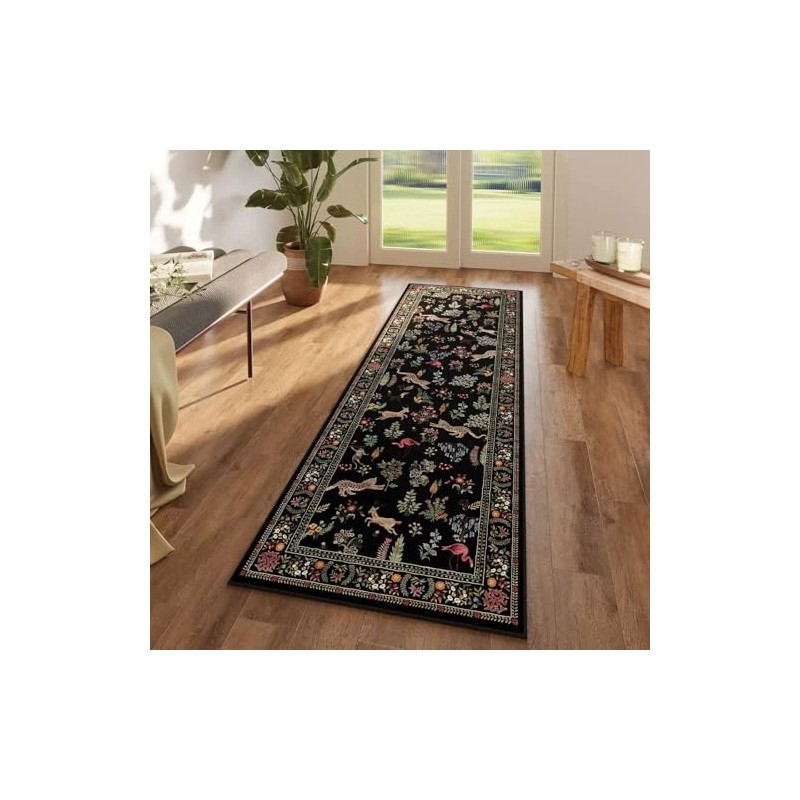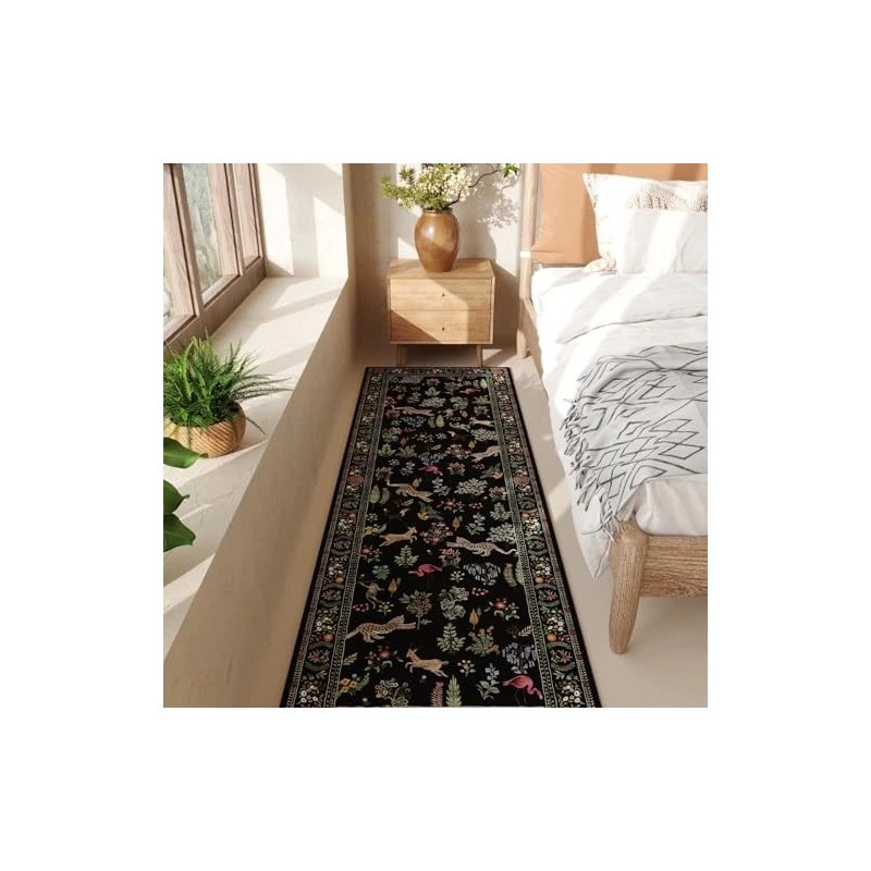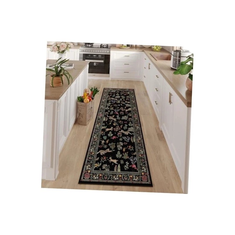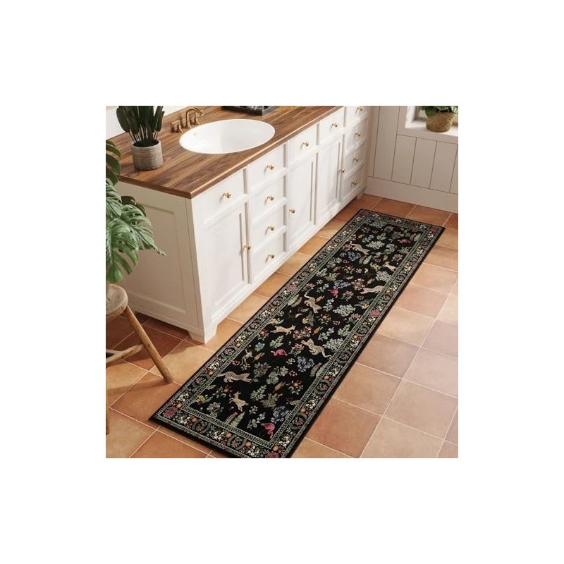 Runner Rug for Kitchen Rug Non Slip 2'x6' Washable Rugs with Rubber Backing Soft Floral Animal Carpet Runner for Kitchen, Laundry, Bedroom, Bathroom (Black)