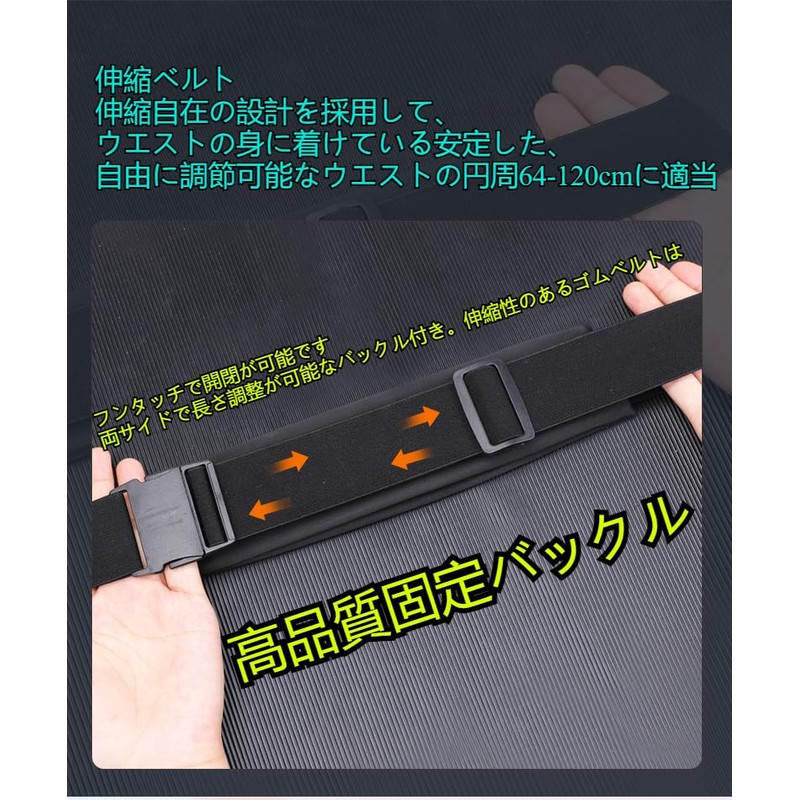 Elastic belt fits a wide range of waist sizes from 64cm to 120cm. Comfortable for men and women. It is easy to adjust and will keep it firmly in place while still providing a comfortable fit.