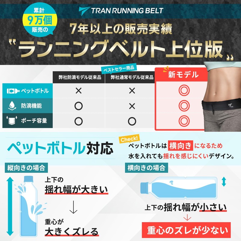 - (Improved based on over 2,000 reviews) The plastic bottle is horizontally and does not lose balance when running. In addition, it has less water movement compared to vertical orientation, reducing discomfort. Made of quick-drying material The main pouch zipper is ranked 1.6 inches (4 cm) longer. Over 200 times open and close test. The Velcro material has been upgraded in 1 rank, and it has less pilling and improved durability