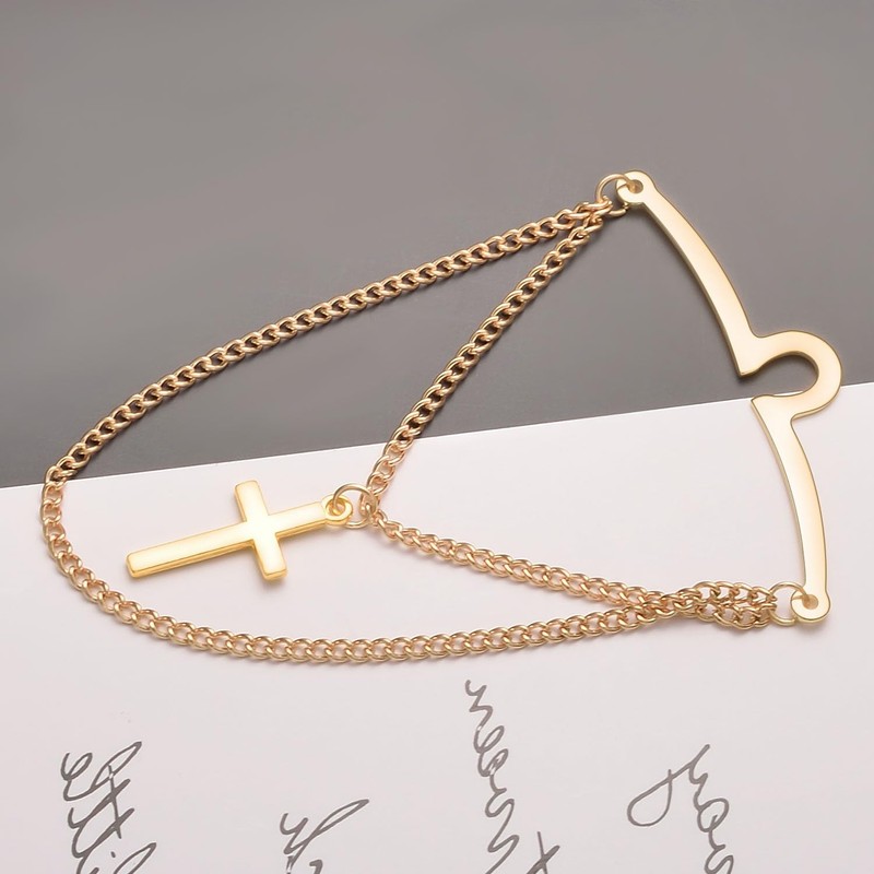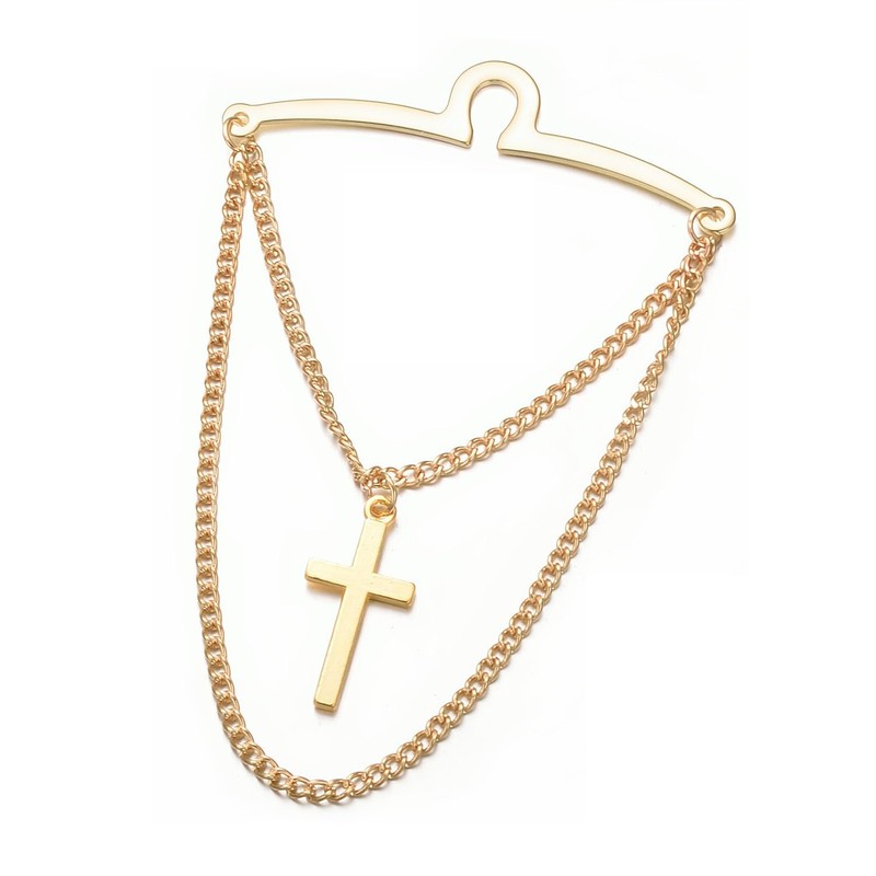 RunootPR Men's Gold Tie Chain 2.4" Simple Cross Tie Clip with Double Chain Business Jewelry Gift, 2.4", Brass, No Gemstone