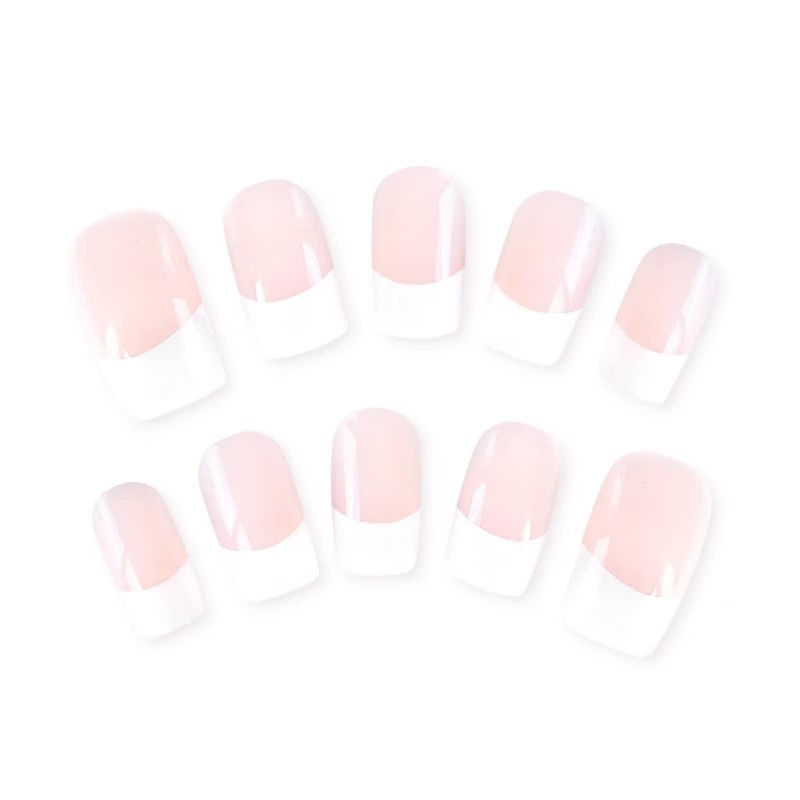 - RUNRAYAY 24Pcs Press on Nails Medium, Nude French Tip Fake Nails Coffin, False Nails with Design for Women and Girls