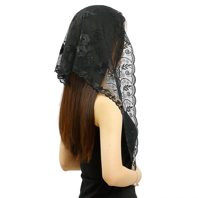 RUNRAYAY Black Veil Lace Mantilla Catholic Church Chapel Veil Head Covering Latin Mass Shorts, Style 1