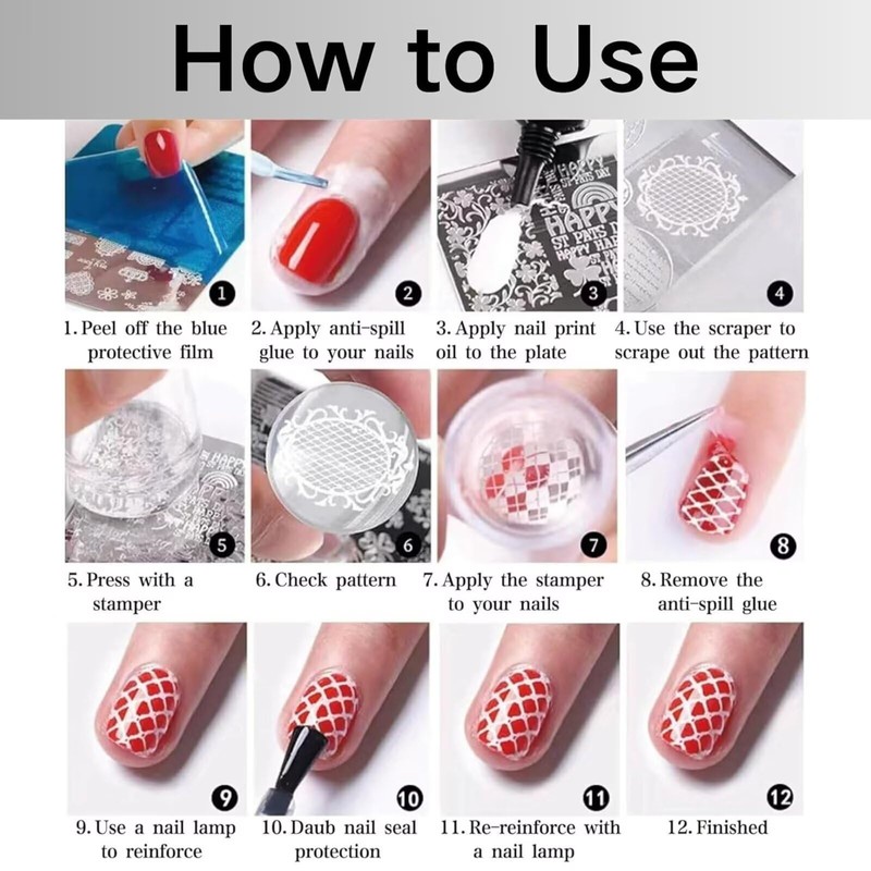 - ☛[Easy to Use]: You can transfer design template from plate to your nail using professional nail stamping polish gel, and can also be used to reverse stamping, just transfer image to stamper and fill outlines with different varnishes or paint using a brush or dispensing tool, nail stamping plates set creating your unique decals or stickers.