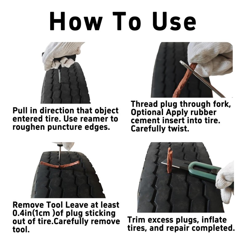 - Versatile Application: Suitable for tubeless tires, these repair plugs can be used on a wide range of vehicles, including cars, motorcycles, wheelbarrows, and more. This versatility makes them an essential tool for anyone who frequently deals with tire punctures.
