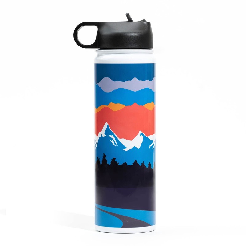- EXCLUSIVE DESIGN! This Mountain Scene 20 oz stainless steel water bottle is proudly designed right here in the USA and is perfect for the passionate sports fan! This awesome running water bottle is perfect for jogs, marathons, taking your drink on the go and so much more! The exclusive design paired with the smooth powder coated finish of this water bottle make it a clear winner in the drinkware department.