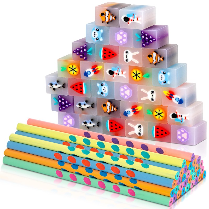 - 🌈【Fun Prizes for Students】32 hole pencils + 32 fun erasers can be used as class gifts, school rewards, school supplies, student prizes, novel and cute erasers, and can also be used as small rewards to encourage students.