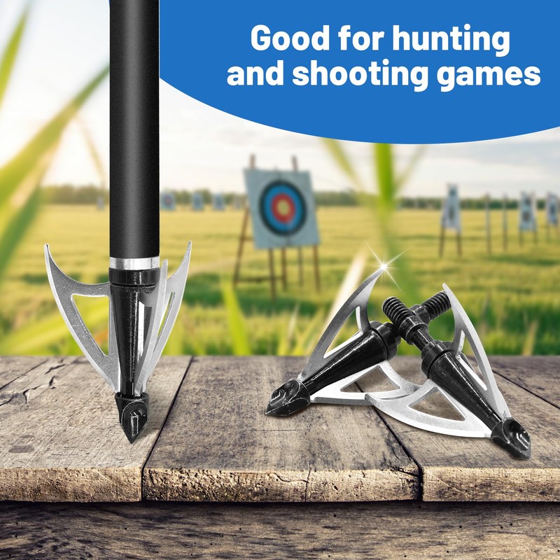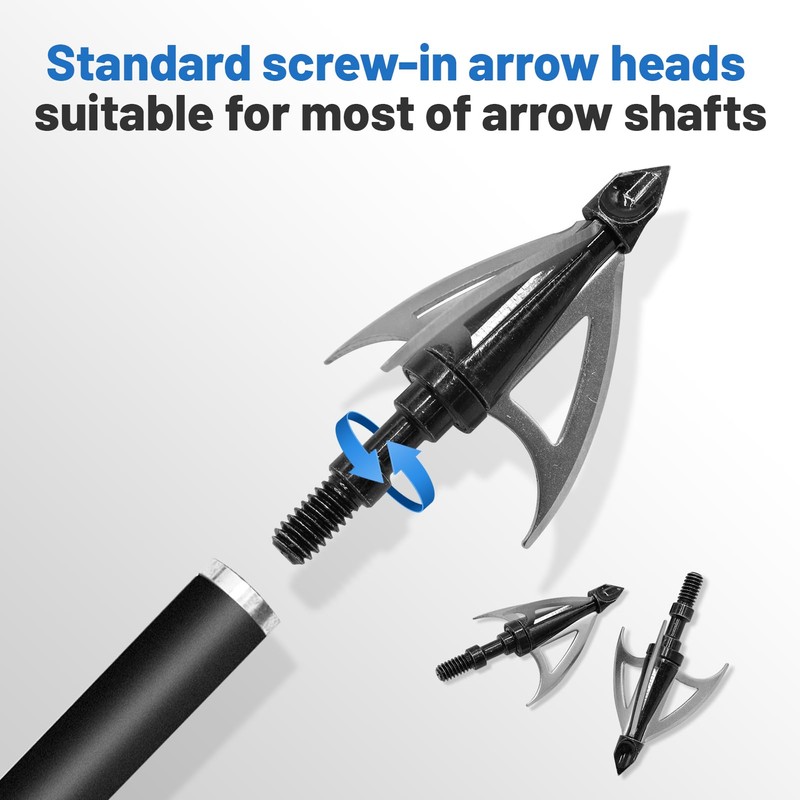 • Standard screw-in arrow heads, are easy to install and replace, are suitable for most of crossbows and recurve bows, and a good choice for hunters, beginners and shooters.