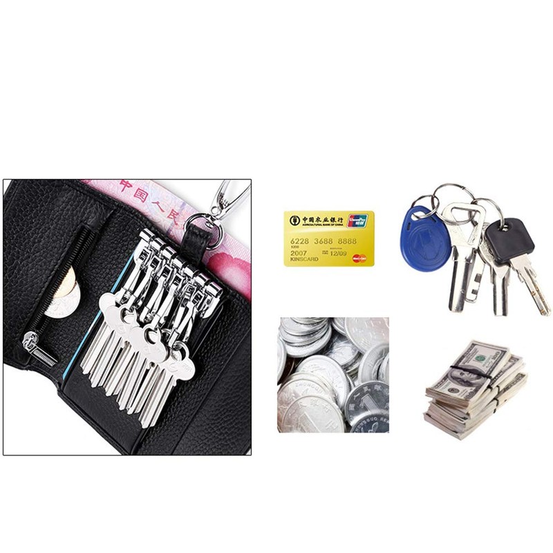 - Europe & American fashion cattle hide unsex key case holds up to 6 keys and 1 split key ring for access card, which is useful and convenient for user to carry his/her keys