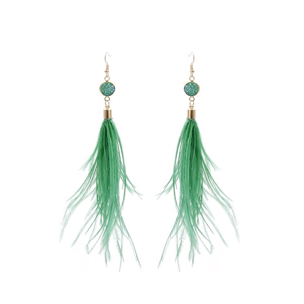 RUOFFETA Long Feather Earrings for Women, Bohemian Elegant Delicate Faux Druzy Charms Dangle Earrings(Green)