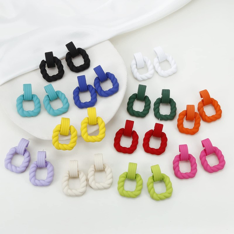 • Acrylic Rectangle Earrings: The gorgeous geometric earrings are featured twisted design square shape, looks chic and charming. The color is vibrant and has a classy look