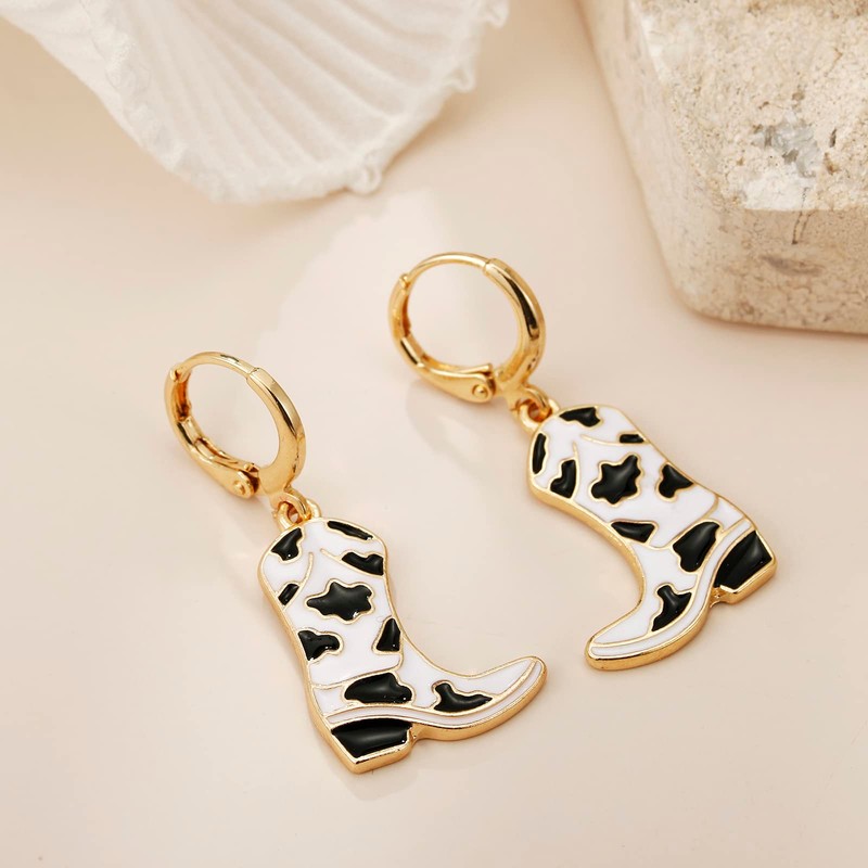 RUOFFETA Western Cowgirl Boot Earrings for Women, Cowgirl Hat dangle Earrings(Cow Boot)