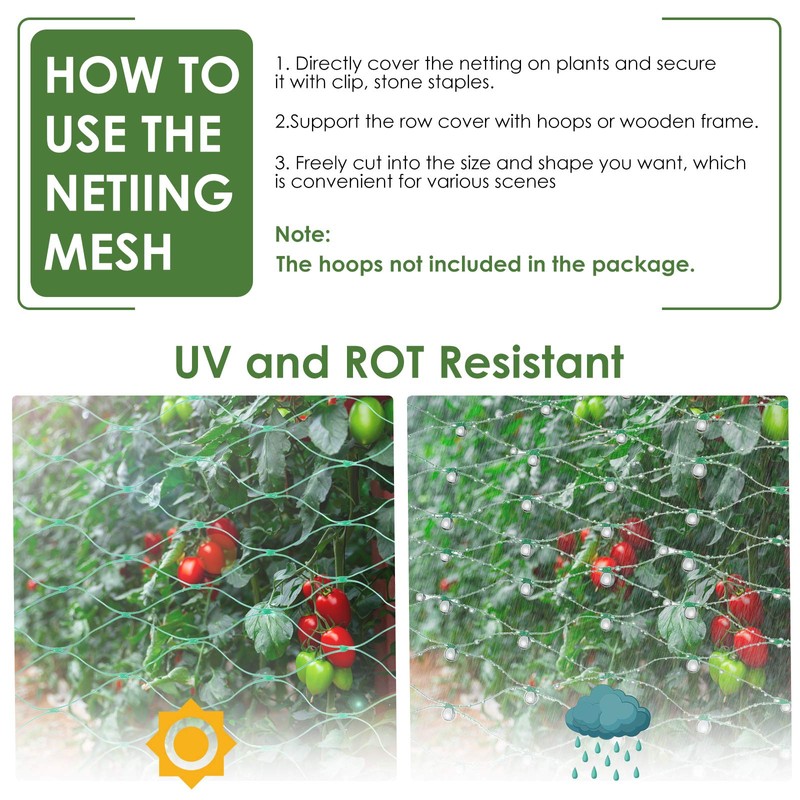- Sturdier than other netsOur bird netting is light and strong, not as thin and fragile as other nets.Made from durable polypropylene, it is UV and rot resistant unlike nylon material,Built for long life