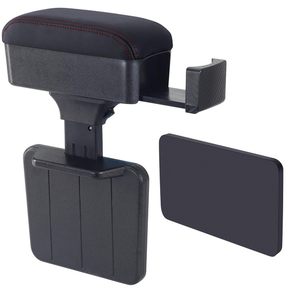 Rupse Universal Car Armrest Storage Box with Cup Holder, Adjustable Wrist Support, Center Console Organizer for Most Cars (Black Red Line)