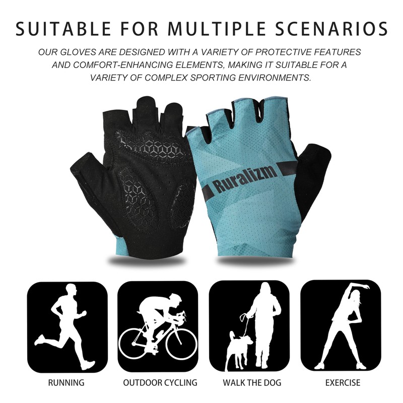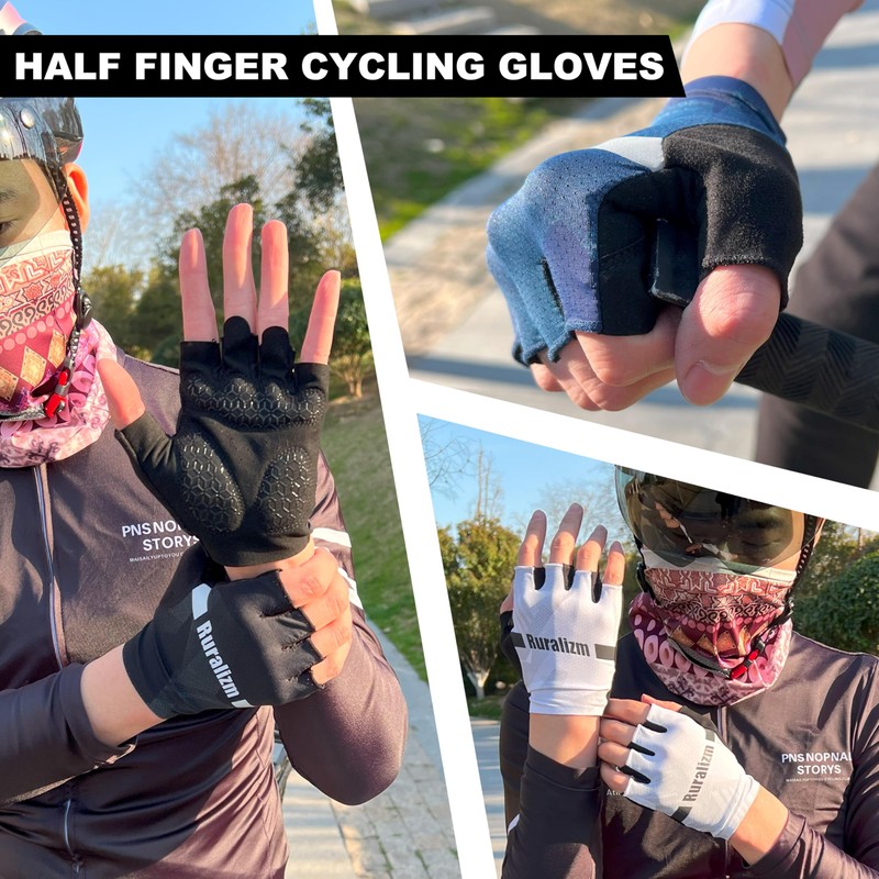 RURALIZM Half Finger Cycling Gloves with Reflective Logo, Anti-Slip Silicone Grip & Memory Foam Padding – Breathable Nylon-Spandex Back, Seamless Cuff for Shock Absorption (Black, Large)