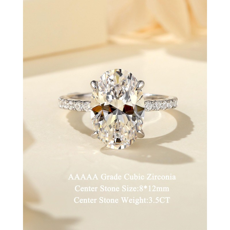 RURULUYA 3.5CT Oval Cut Engagement Rings for Women,Simulated Diamond Ring,925 Sterling Silver 18K Yellow/White Gold Plated Promise Ring (White Gold(3.5CT), 5.5)