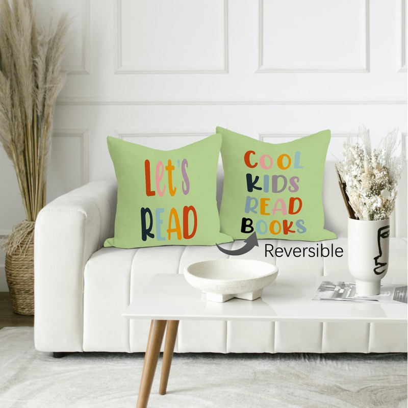 Rusenbao Classroom Reading Green Pillow Covers - Toddler Reading Nook Kids Decor Daycare for Book Corner Playroom Nursery, Let's Read Cool Kids Read Books, 18 x 18 Inch Pillowcase