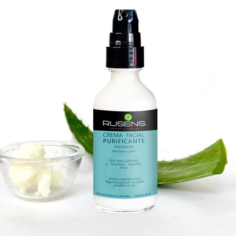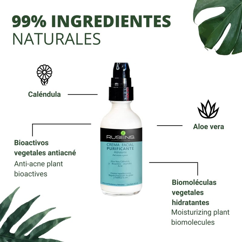 Rusens - Crema Facial Purificante, Matificante (Antiacné) 99% Natural, Ideal para Piel Grasa a Mixta con Tendencia a Acné, - Consistencia Ligera y de Rápida Absorción- Regula Producción de Grasa, Controla Barritos y Espinillas, Hidrata la piel.