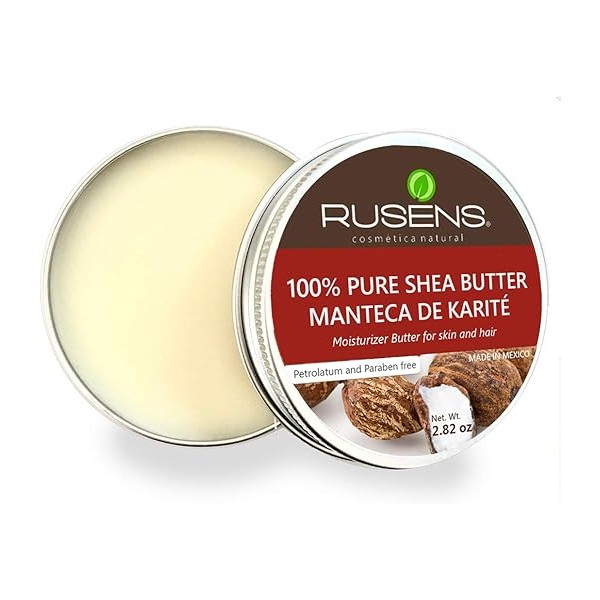 Rusens - Manteca de Karité 100% Pura Orgánica. Excelente Regenerante Natural, Extra humectante, Mejora la Elasticidad de la piel, humecta a profundidad y previene Estrías.