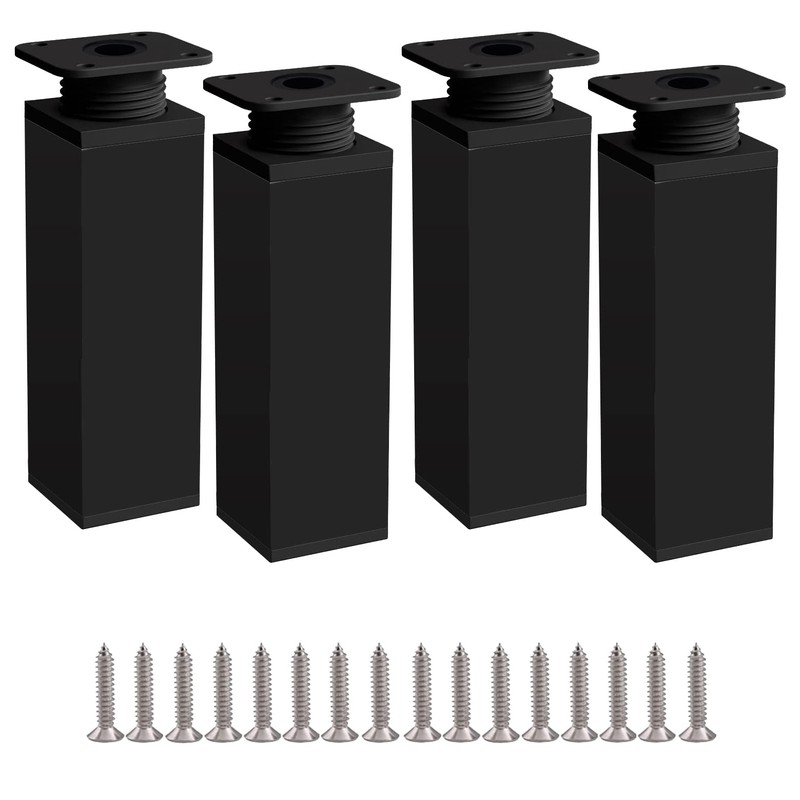 Rusoz Black Legs for Furniture, 4 Pcs Adjustable Cabinet Legs 150mm Adjustable Height 0-20mm Aluminum Alloy Table Legs for Desk,Sofa and DIY Furniture