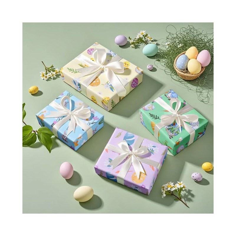 - Value Package: Package includes totally 12 sheets wrapping paper in 4 different designs, each design has 3 sheets, sufficient to meet your needs for Easter spring gifts wrapping