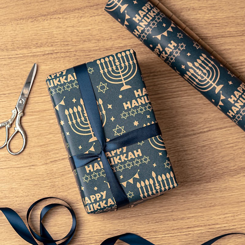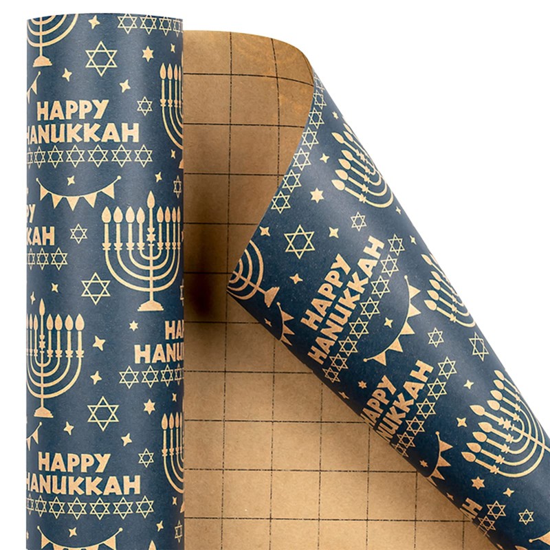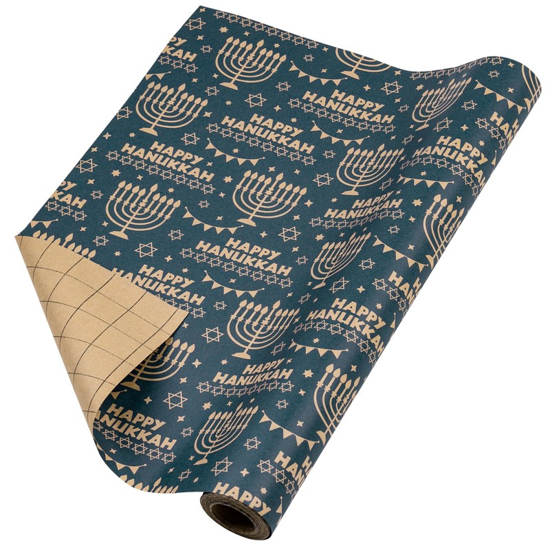 RUSPEPA Kraft Hanukkah Wrapping Paper Roll - Mini Roll - Menorah Design for H...