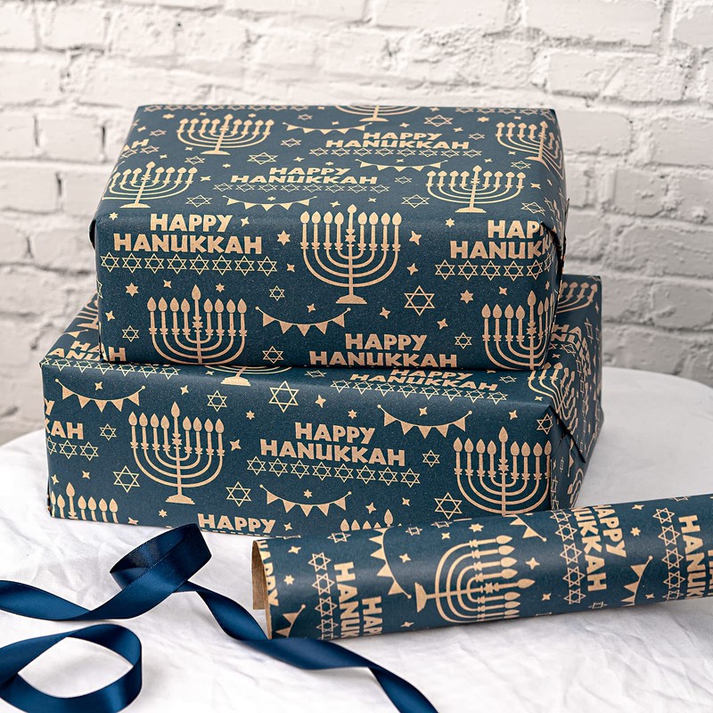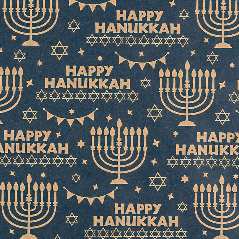 RUSPEPA Kraft Hanukkah Wrapping Paper Roll - Mini Roll - Menorah Design for Holiday Gift Wrap - 17 Inches X 32.8 Feet