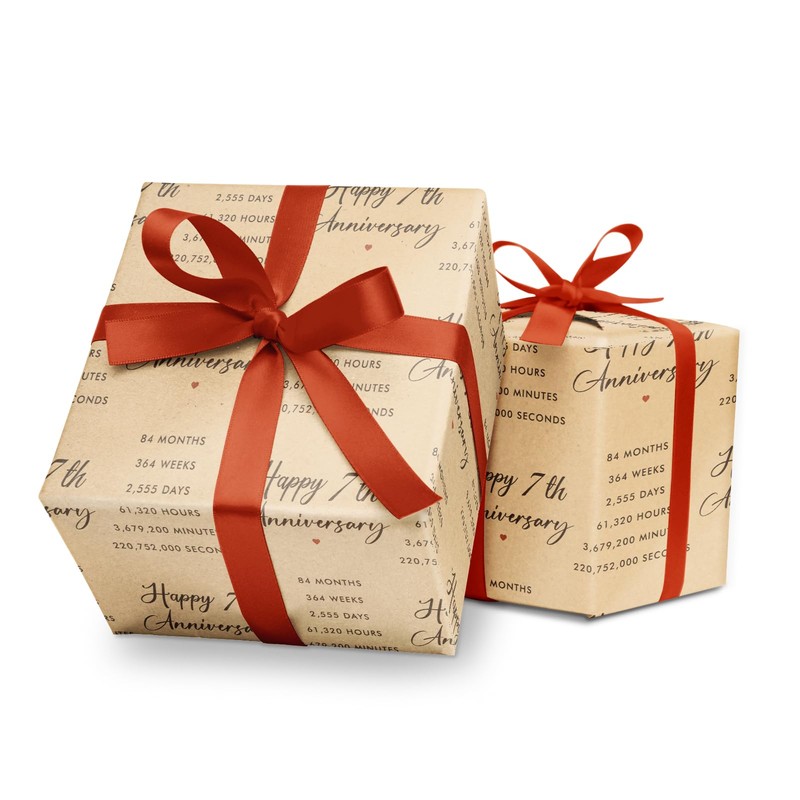 - Vibrant Design: Wrapping paper features "Happy 7th Anniversary" and time recorder patterns that adds commemorative significan to any gift, making every gift stand out