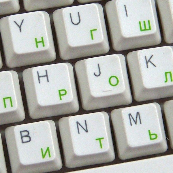 Russian Cyrillic Keyboard Labels Layout with Green Lettering Transparent Background