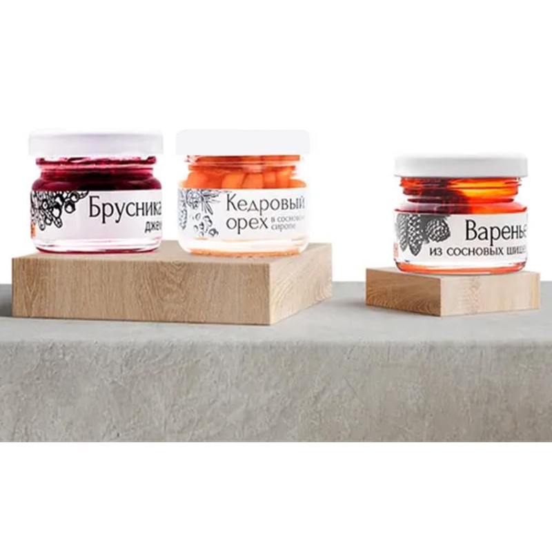 Russian Forest Assorted Desserts SILVER With Pine Nuts in Pine Syrup, Lingonberry Jam And Pine Cone Preserve 25g / 0.88oz Each