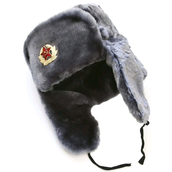 Russian Ushanka Winter hat Gray-60 with Russian Imperial Eagle Insignia