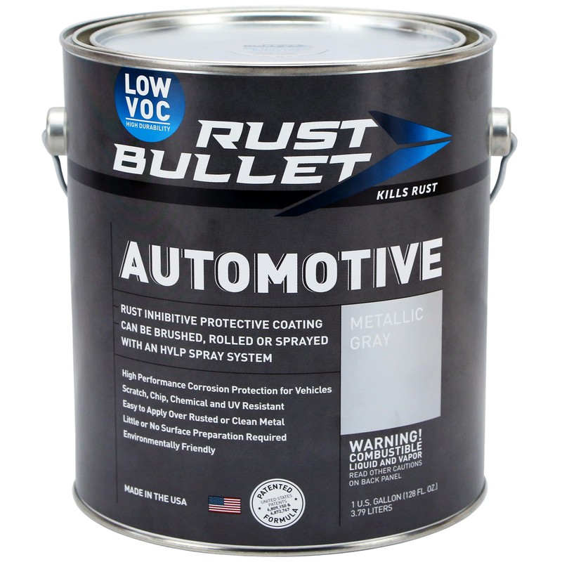 RUST BULLET - Automotive Low VOC Rust Preventive Protective Coating UV Resistant - No Topcoat Needed - Metallic Grey, Gallon