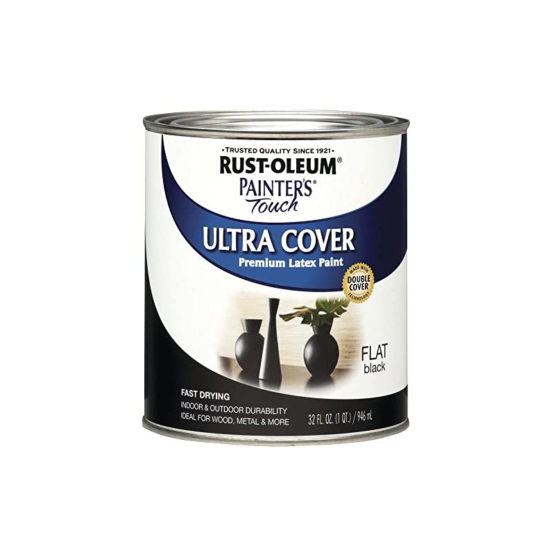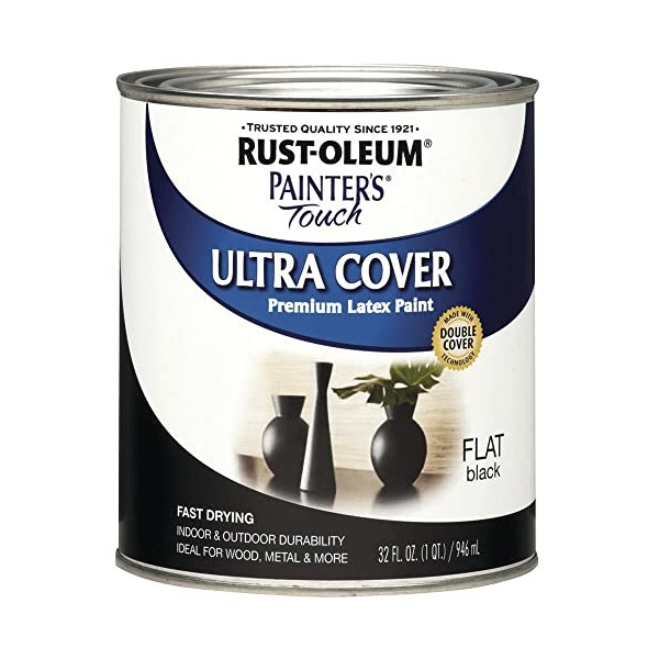 Rust-Oleum 1976502 Painter's Touch Latex Paint, Quart, Flat Black 32 Fl Oz (Pack of 1)