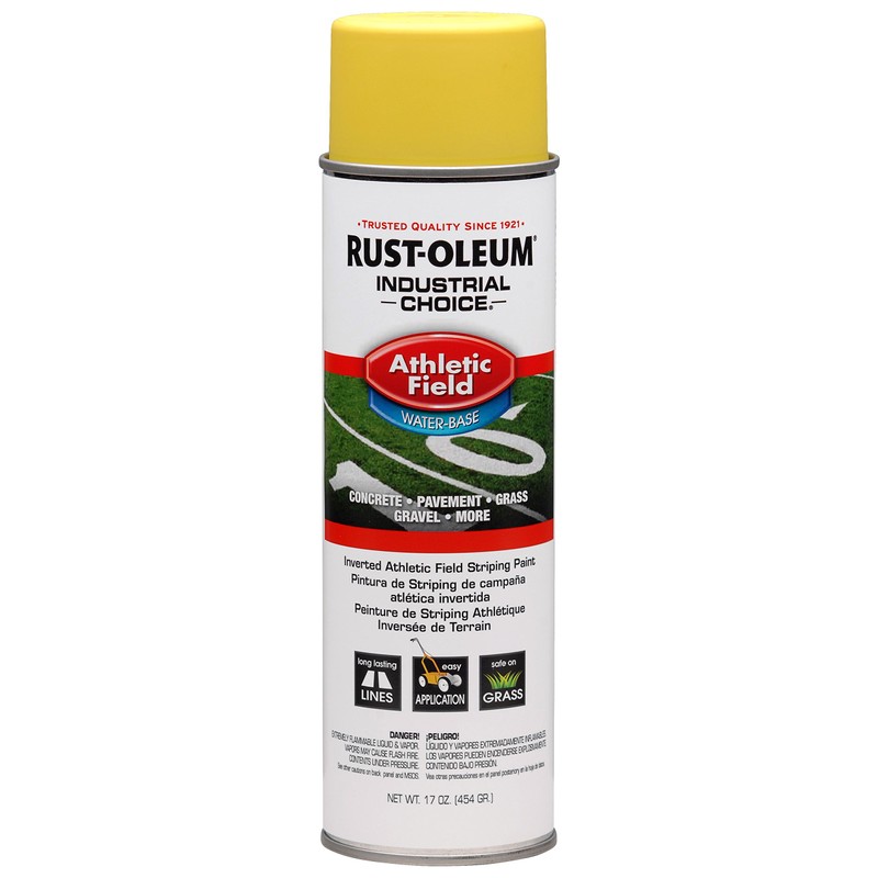 - No mess, spray-through cap works upside-down on its own or paired with the Rust-Oleum striping wand or athletic field striping machine for even easier application and large jobs