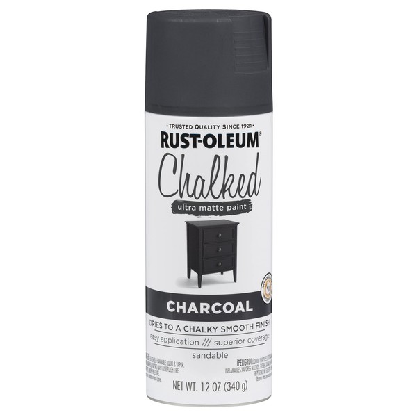 Rust-Oleum Charcoal Chalked All-in-One Ultra Matte Spray Paint | One Coat Coverage | No Primer, Sanding, Or Topcoat Needed | Easy Spray Application | Made in USA | 12 OZ