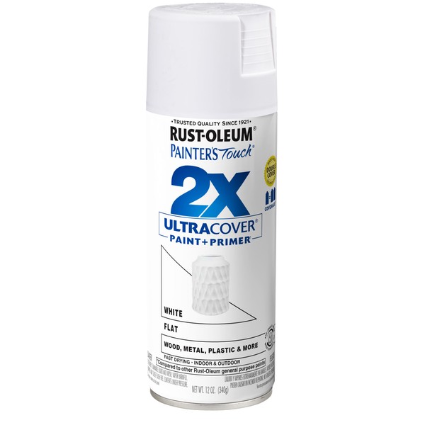 Rust-Oleum 249126 Painter's Touch 2X Ultra Cover Spray Paint, 12 oz, Flat White