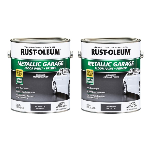 Rust-Oleum 349353-2PK Metallic Garage Floor Paint and Primer, Gallon, Gunmetal, 2 Pack
