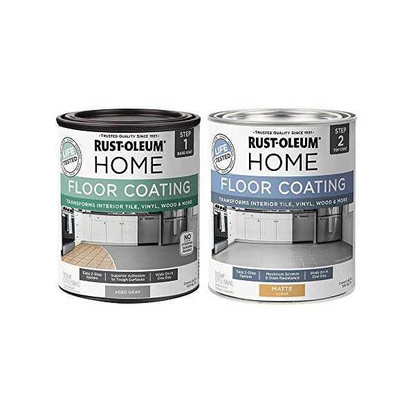 Rust-Oleum 367600 Home Interior Floor Coating Kit, Semi-Gloss Aged Gray