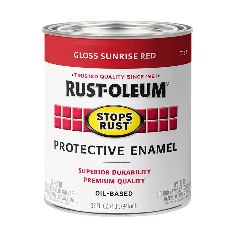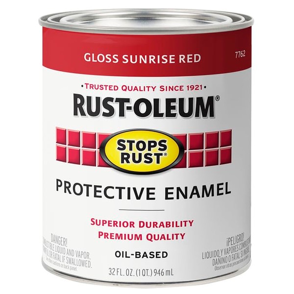 Rust-Oleum 7762502-2PK Stops Rust Brush On Paint, Quart (2 Pack), Gloss Sunrise Red, 2 Can
