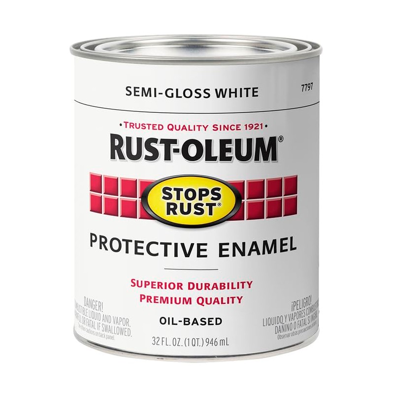Rust-Oleum 7797502-2PK Stops Rust Brush On Paint, Quart (2 Pack), Semi-Gloss White, 2 Can
