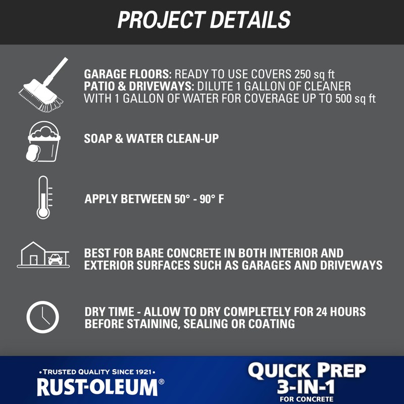 - Clean, degrease and etch bare concrete in one step to prep for coating