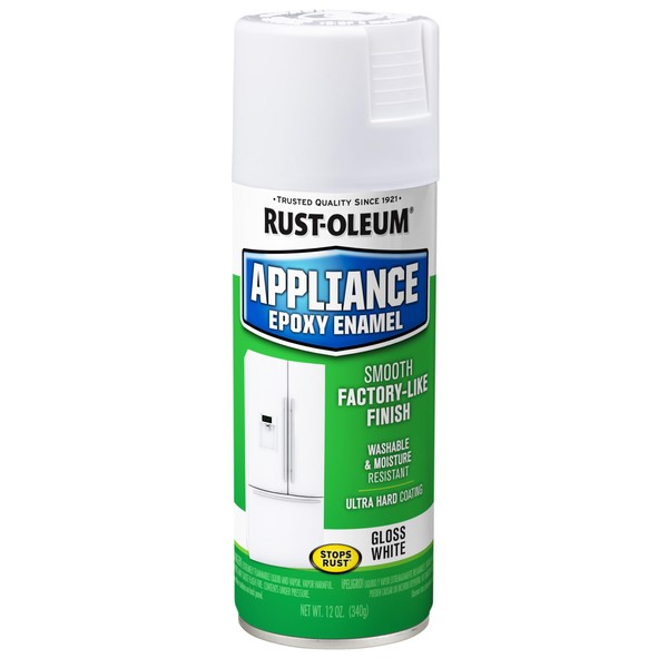 Product DescriptionRust-Oleum 7881830 Appliance Epoxy Enamels Spray Paint, White Rust-Oleum Specialty Appliance Epoxy is an ultra-hard, moisture resistance enamel that is specifically formulated for indoor metal surfaces. It provides a smooth, washable surface for refinishing the exterior of appliances such as refrigerators, dishwashers, laundry machines, and other indoor metal applications (cabinets, tables). Do not use on objects exposed to heat (stovetops, oven interiors, etc.) Rust-Oleum 7881830 Appliance Epoxy Enamels Spray Paint, White Features: Make appliances look like new for just a few dollars Hard epoxy finish washes easily and resists abrasion Stops Rust formula Protects against moisture and scratches Also great for metal cabinets, desks and more Gloss White 12-Ounce rosol.From the ManufacturerRust-Oleum 7881830 Appliance Epoxy Enamels Spray Paint, White Rust-Oleum Specialty Appliance Epoxy is an ultra-hard, moisture resistance enamel that is specifically formulated for indoor metal surfaces. It provides a smooth, washable surface for refinishing the exterior of appliances such as refrigerators, dishwashers, laundry machines, and other indoor metal applications (cabinets, tables). Do not use on objects exposed to heat (stovetops, oven interiors, etc) Rust-Oleum 7881830 Appliance Epoxy Enamels Spray Paint, White Features: Make appliances look like new for just a few dollars Hard epoxy finish washes easily and resists abrasion Stops Rust formula Protects against moisture and scratches Also great for metal cabinets, desks and more Gloss White 12-Ounce rosol.
