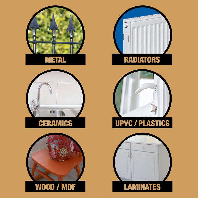 - Can be applied directly to wood, metal, plastics, ceramics and more.
