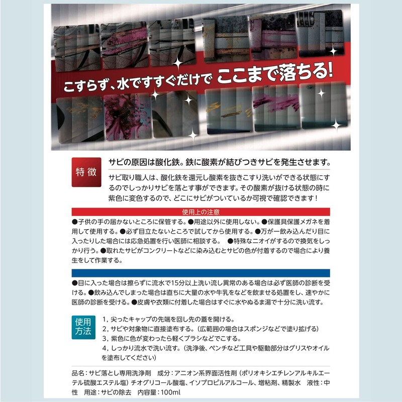 - Formulated with highly functional ingredients developed after researching the properties of rust!