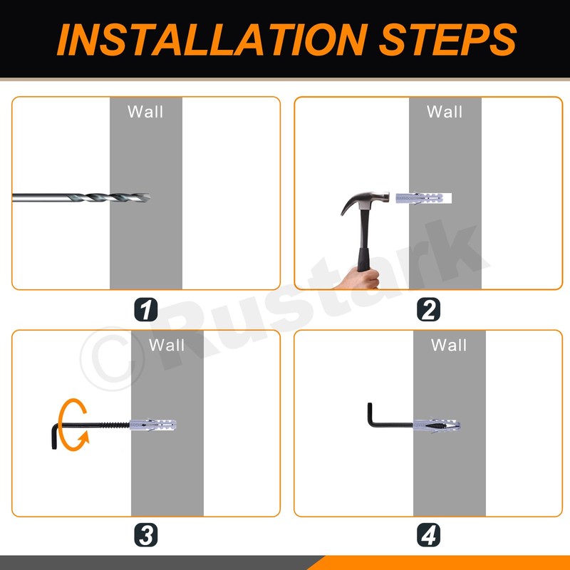 - 【 What You Get 】 --- You'll receive a 150pcs 3 sizes black square bend hook kit with expansion tubes. The square bend hook kit includes 15pcs #8x40 expansion tubes, 35pcs #5x25 expansion tubes, 25pcs #6x30 expansion tubes, 35pcs M2.8x35mm square bend hooks, 15pcs M3.7x70mm square bend hooks, 25pcs M3.8x50mm square bend hooks, in total 150pcs. Sufficient quantity and different sizes can meet your different needs in daily life.