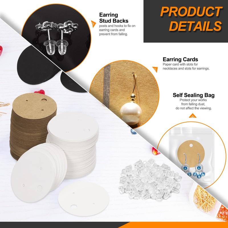 ➤ Rustark Round Paper Earring Display Cards Kit for Hanging Earrings Packaging with Earring Holder Cards, Silicone Earring Backs, Self-Sealing Bags