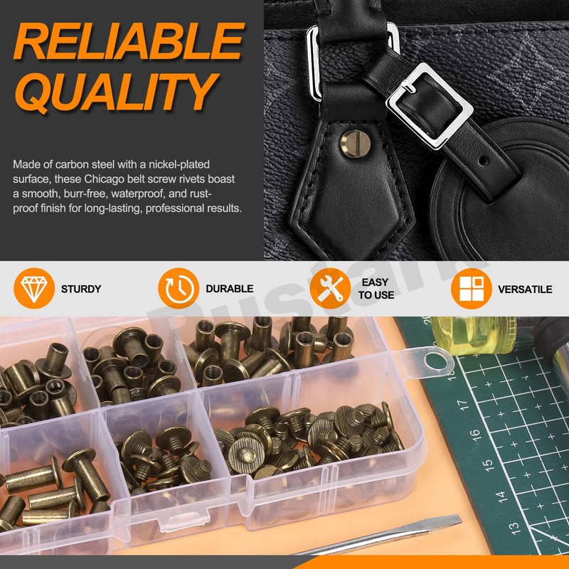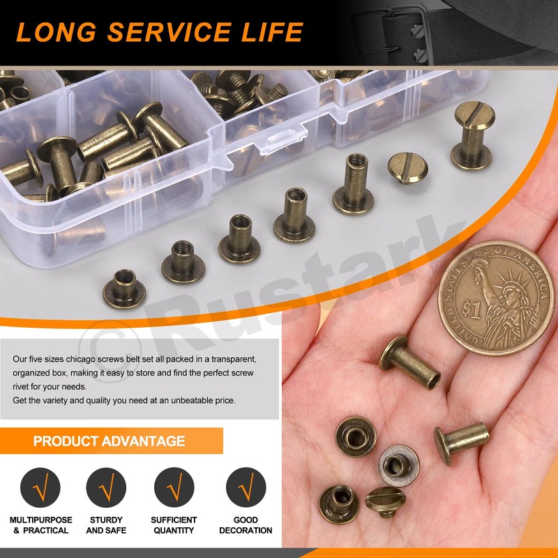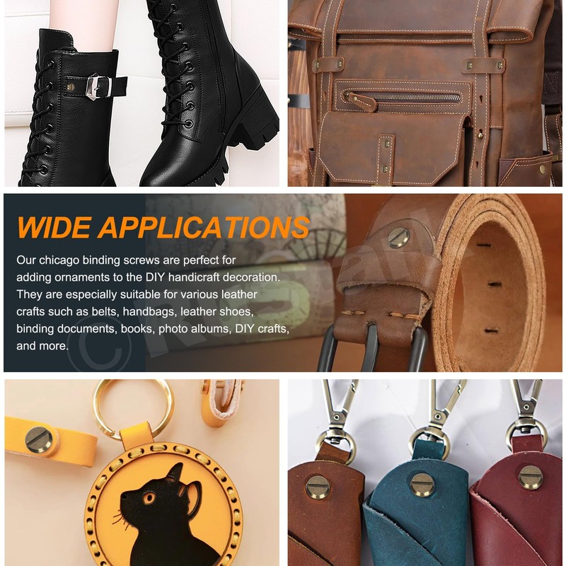 - 【 Wide Application 】--- The chicago screws are perfect for decorating or repairing items such as belts, handbags, shoes, purses, binding documents, books, photo albums, DIY crafts, and more. Ideal to create your DIY leather craft and bookbinding to your heart's content!